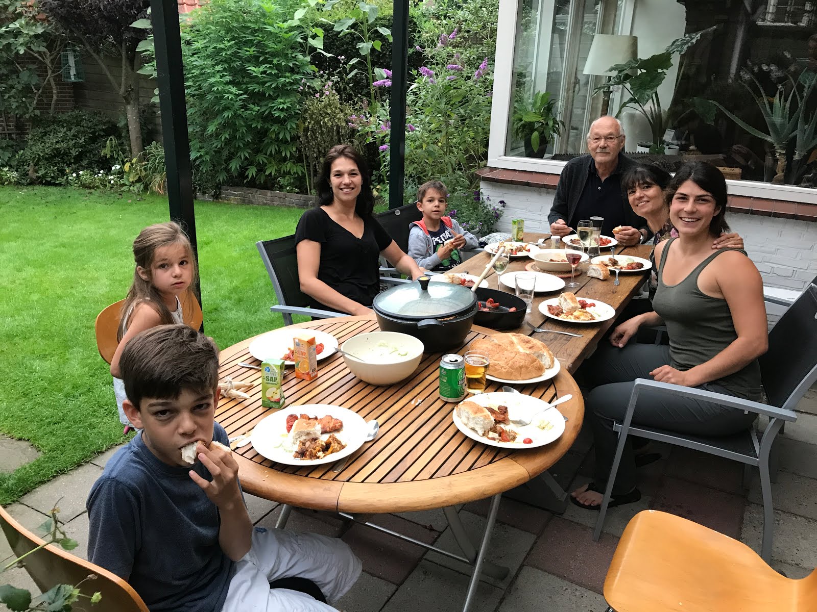 We’ve been having a wonderful time here in The Netherlands with Monisha’s family! On Sunday we got to watch Monisha’s cousin’s David and Thomas win a doubles match in the local tennis tournament. Afterwards we went over to their house for dinner. Monisha’s uncle Paulo prepared Thai curry, and his wife Agatha made poffertjes for desert. Poffertjes are small sweet Dutch pancakes, often served with butter and powdered sugar. Paulo is the first of Esther’s siblings Nolan met. He lived up to expectations, staying quite true to what Nolan’s been told about him. First, there was never too long of a moment of silence. Second, after Paulo and Monisha had a 1+ hour long conversation about whether slugs and snails are different animals, Paulo spent the rest of the evening bringing it back up. Paulo continues to insist that the snails in his garden leave their shells to go find new shells, and that’s why you see slugs, or shell-less snails.